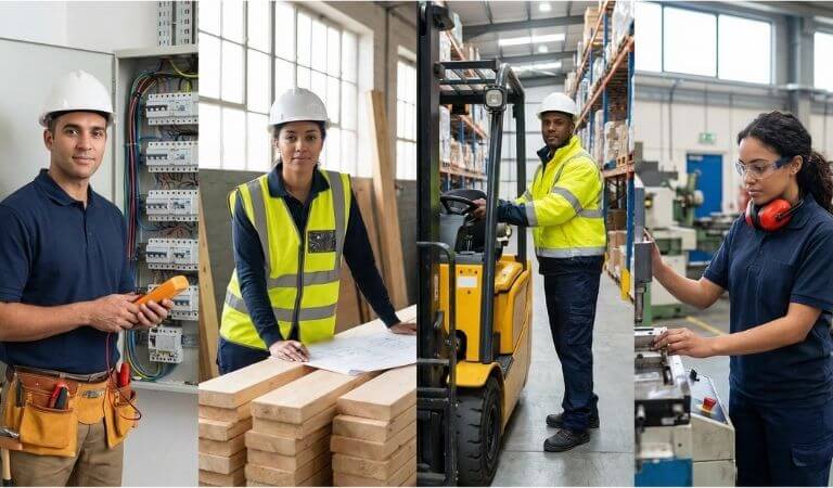 Electricians, plumbers, carpenters, fitters, welders, operators